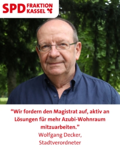 „Wir fordern den Magistrat auf, aktiv an Lösungen für mehr Wohnraum für Azubis mitzuarbeiten,“ sagt Wolfgang Decker, Stadtverordneter der SPD-Fraktion Kassel. Der dringende Bedarf an bezahlbarem Wohnraum betreffe neben Studierenden auch Auszubildende. In einem entsprechenden Antrag fordert die SPD-Fraktion den Magistrat daher auf, als Mehrheitsanteilseigner des FiDT an der Realisierung des Projektes Azubi-Wohnen mitzuwirken und […]