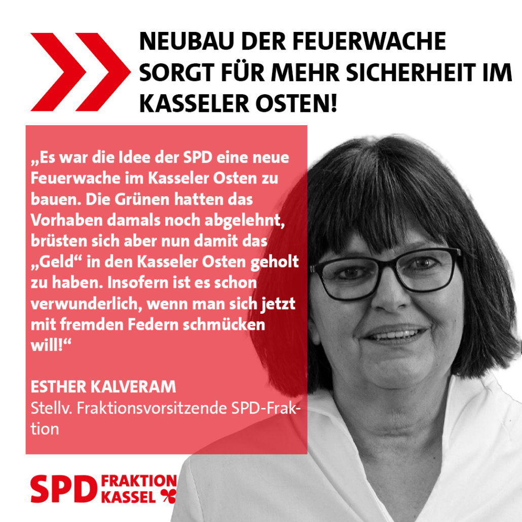 „Bei aller Zustimmung in der jetzigen Stadtverordnetenversammlung zum Bau der Feuerwache, muss noch einmal betont werden, dass es die Idee der SPD war, diese zu bauen. Die Grünen hatten das Vorhaben damals noch abgelehnt, brüsten sich aber nun damit das „Geld“ in den Kasseler Osten geholt zu haben“, kritisiert Kalveram: „Insofern ist es schon verwunderlich, wenn man sich jetzt mit fremden Federn schmücken will.“