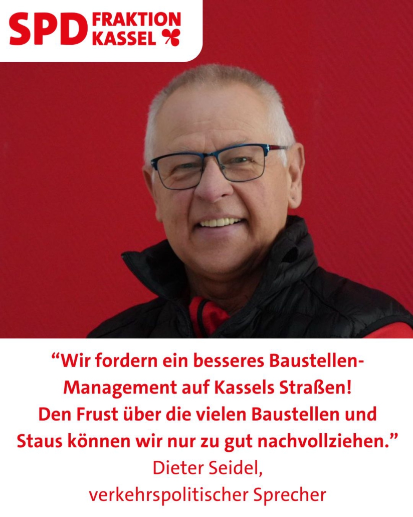 Als Beispiel nennt Seidel die Vollsperrung der Wilhelmshöher Allee zwischen Adolfstraße und Sophienstraße. Dort wird aktuell eine Fernwärmeleitung verlegt. Eine alternative Verkehrsführung über die stadtauswärts führenden Fahrspuren wäre grundsätzlich möglich gewesen, wurde aber durch den zuvor errichteten Baukran an einem privaten Gebäude (Glinicke /ehemals Fraunhofer) blockiert. „Mit besserer Abstimmung zwischen den Beteiligten wäre es möglich gewesen, den Verkehr aufrechtzuerhalten und die Belastung für Anwohnerinnen, Anwohner und Pendler zu verringern“, so Seidel.